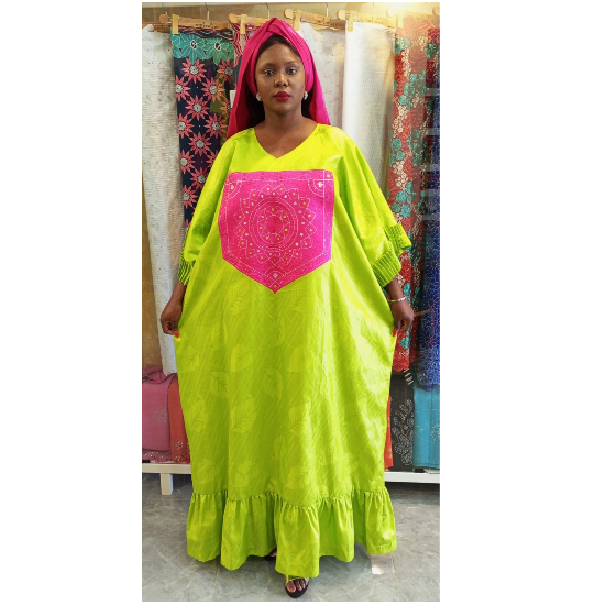 Robe Kenza 100% Coton, Bazin Brode Provenance : Benin